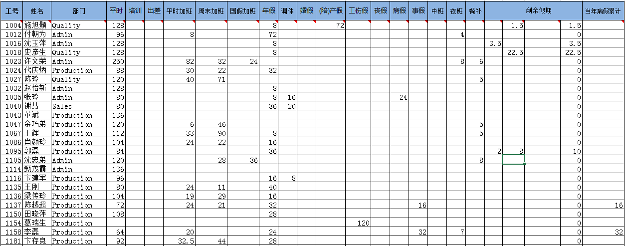 (月度考勤匯總表)