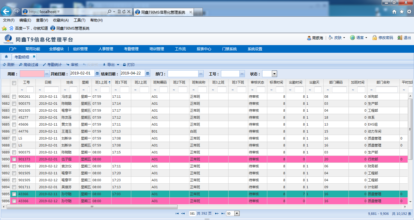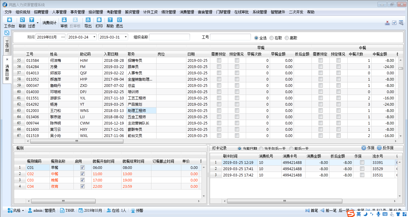 2.同鑫人力資源管理系統(tǒng)上線情況: 上線模塊有,人事/事務(wù)/考勤/門禁/消費(fèi)/報(bào)表等