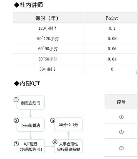 5.對(duì)企業(yè)內(nèi)部員工培訓(xùn)所花費(fèi)課時(shí)來制定了詳細(xì)的標(biāo)準(zhǔn),只有對(duì)本部分員工起到良好的傳幫帶作用才能做為一個(gè)優(yōu)秀的領(lǐng)導(dǎo)者,不然你升上去了,你留的空缺怎么辦,如果想升職,你就必須帶出接替你崗位的員工,把你的知識(shí)點(diǎn)傳授下去,我們看看該企業(yè)的員工所花費(fèi)的培訓(xùn)工時(shí)是如何為晉升的考核指標(biāo)的: